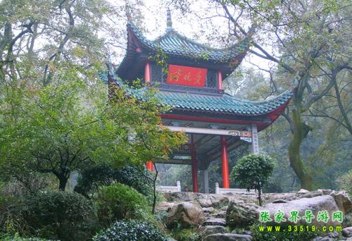 愛晚亭位于岳麓書院后青楓峽的小山上,八柱重檐,頂部覆蓋綠色琉璃瓦,攢尖寶頂,內(nèi)柱為紅色木柱,外柱為花崗石方柱,天花彩繪藻井,蔚為壯觀。清乾隆五十七年(公元一七九二年)山長(zhǎng)羅典所建。原名“紅葉亭”,又名“愛楓亭”。后據(jù)唐代詩(shī)人杜牧《山行》而改名為愛晚亭,取“停車坐愛楓林晚,霜葉紅于二月花”之詩(shī)意。