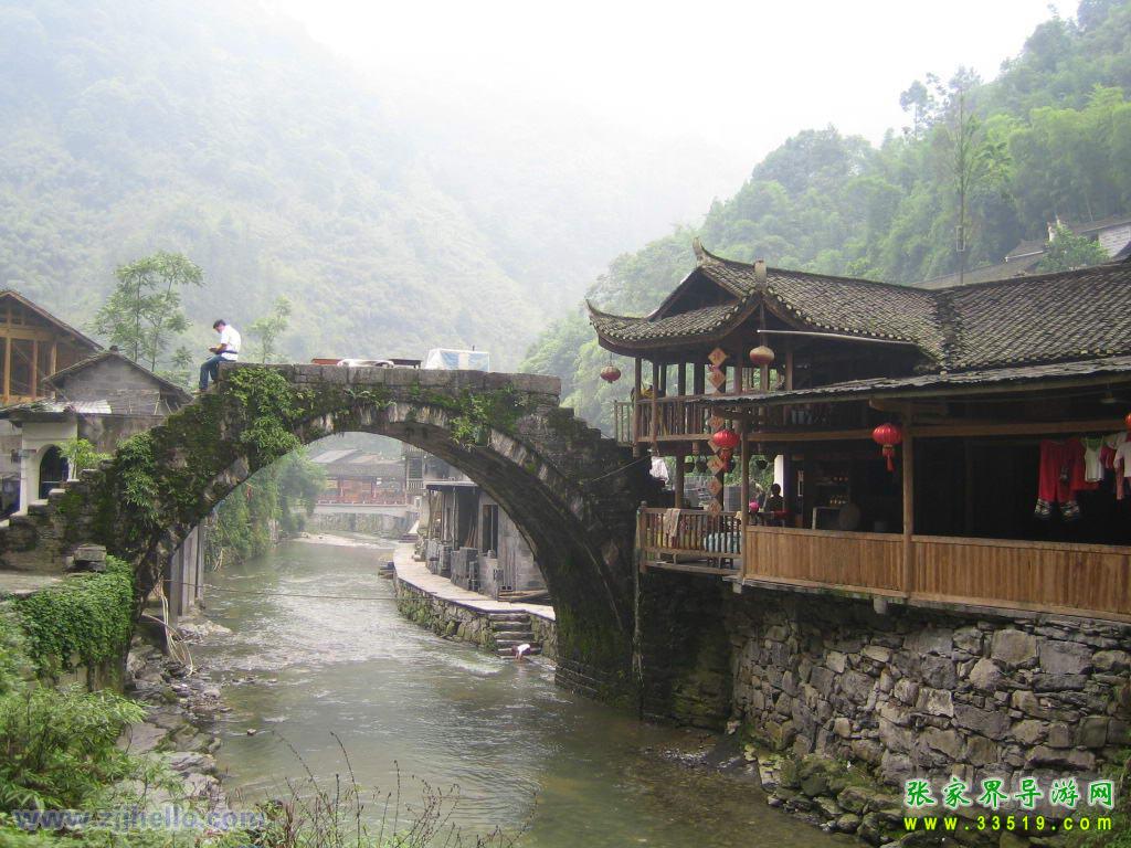 青山綠水間,一幢幢灰瓦石基吊腳木樓,一條條光滑石板路,一座座精巧石拱橋,一群群赤足紅裝浣紗苗女,以及那古老的石碾和筒車,咿咿呀呀不知疲倦地轉悠著,告訴這些來到德夯大峽谷的游人,這里還居住著中國最古老的民族——苗族。