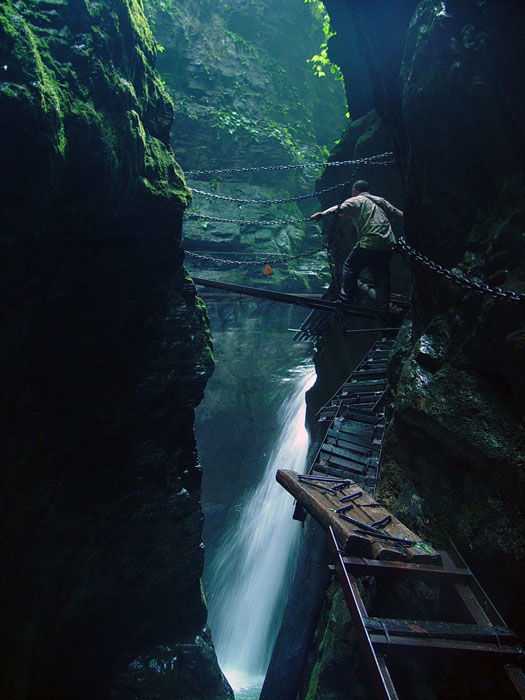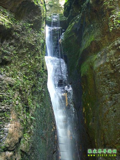 坐龍峽擁有中國第一條特種游道。所有游道均建于峽谷深處,依山取勢,既經細心雕琢聽卻又渾然天成。粗樸的板栗木棧道,可以讓你零距離的親近那一潭碧幽、聽聞山泉叮咚;精巧的跳墩,可以讓你媳戲流泉、觸感溪瀑;原質的石坎道,讓你不得不調動全部的身心能量悉心攀援、感悟峽谷;有驚無險的鐵梯,讓你伴著腳下轟鳴的溪水,在驚怵中體味一份快慰。 出口出的土家山寨,保留了古樸獨特的生活習俗。一塊臘肉就一口醇香的“苞谷燒”會讓你洗去所有的疲憊,在輕松中憨厚的主人向你講述過去強人出沒的故事