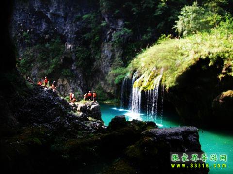 碧海洞天人體漂流,兩岸絕壁陡峭,巖石嶙峋美麗,灘險壁絕,水質(zhì)清澈、大小潭無數(shù)、瀑布十余條迭起、險灘二十余處而著名。最經(jīng)典一處,穿過水洞,眼前就是一幅水簾洞天的絕美風景:潭水如處女般恬靜,水質(zhì)湛藍如玉,從鋪滿綠色藻類植物的山崖上流下,宛如珠簾,落入玉潭。一路的高掛瀑布,一路的幽潭碧水,整個穿越過程刺激驚險。