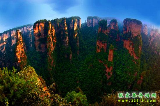袁家界位于張家界國家森林公園北面,位居張家界武陵源風(fēng)景名勝區(qū)的核心;乘坐世界第一梯—百龍?zhí)焯輧H需要1分58秒;主要景區(qū)有天下第一橋、阿凡達(dá)外景取景地"哈利路亞懸浮山"乾坤柱、后花園、迷魂臺(tái)、羊寨、中韓友誼亭、天懸白練等景點(diǎn);站在袁家界景區(qū)的觀景臺(tái)上,三千奇峰盡收眼底,雄險(xiǎn)秀野,神態(tài)各異。峽谷深處,千百根石峰石柱奇?zhèn)ネ涣ⅰ>椭?,如英武將帥;嵯峨之峰,似勇猛壯士。有聲有色,若靜若動(dòng),形象逼真,呼之欲出。