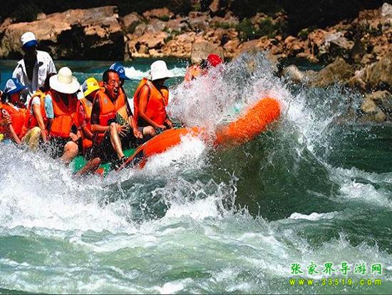 茅巖河漂流段是大庸城西20公里青魚(yú)潭往北一段。茅巖河雖灘險(xiǎn)流急,但河床坡度小,水位落差不大;險(xiǎn)灘較短(一般僅20余米長(zhǎng)),而險(xiǎn)灘與險(xiǎn)灘間的距離卻較長(zhǎng)(一般均逾千米),故浪濤適中,漂流有驚無(wú)險(xiǎn)。茅巖河主要景點(diǎn)有:血門(mén)溝、洞子坊、茅巖灘、夾兒溝、溫塘溫泉、麻陽(yáng)古渡、茅巖河峽、水洞子瀑布等。沿河兩岸青山綠水、風(fēng)光如畫(huà),故又稱(chēng)“百里畫(huà)廊”。