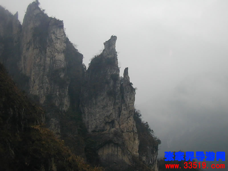 站在空殼巖邊往南遠眺,只見雄壁巖上灰朦朦一片,如煙雨一般,這便是有名的“仙人煙雨!”你看:雨絲并不大,根根細如麻,斷斷續(xù)續(xù)隨風灑,白云生處冒煙霞,啊!好一幅江山多嬌的水墨畫!