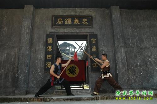 忠義鏢局,它始建于清乾隆四十二年(1777),位于洪江龍船沖,這里會(huì)館、錢莊、豪宅林立,堪稱洪江的曼哈頓。與我們?cè)?a class="insidelink" href="http://m.njhcls.com/hongjiang/" target="_blank" title="洪江古商城">古商城看到的窨子屋不同,這是一座典型的北方四合院,前庭后院,布局嚴(yán)謹(jǐn),軸線明確,左右對(duì)稱,主次分明。前院是鏢師練功習(xí)武之地,墻壁上書(shū)有“忠”、“孝”、“禮”、“義”四字和“十八羅漢練功圖”;后院為鏢師起居和洽談生意之所,內(nèi)供奉關(guān)武大帝。忠義鏢局主要為豪商巨賈押運(yùn)銀票、貨物,看家護(hù)院,坐夜守店,也開(kāi)館收徒,傳授武藝。忠義鏢局的掌門(mén)人劉大鵬,湖南長(zhǎng)沙人,幼時(shí)即入嵩山少林寺習(xí)武,不僅精通十八般武藝,而且頭腦精明,他把鏢局開(kāi)在這洪江最繁華的金融一條街,足見(jiàn)他的經(jīng)商意識(shí)和人面廣了?,F(xiàn)在忠義鏢局現(xiàn)場(chǎng)表演古代押鏢、行鏢全過(guò)程,是人們了解中國(guó)古代鏢行歷史文化的活性博物館。有興趣的朋友可以去洪江古商城親自感受一下當(dāng)時(shí)押鏢的情景吧。