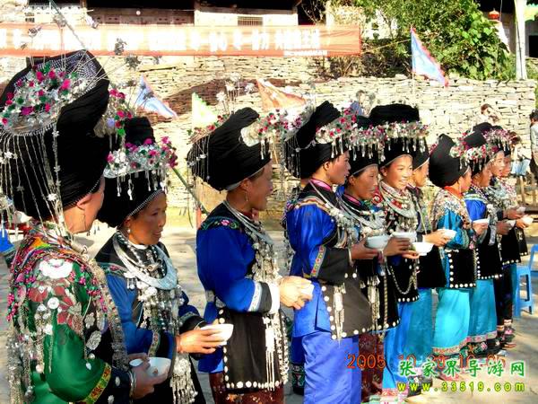 8 苗王城濃郁的苗族風(fēng)情:情歌、木葉歌、敬酒歌;神秘莫測的絕技上刀山、下火海、撈油鍋、鋼針穿喉、仙人合竹、秤桿提米等;驚險(xiǎn)絕倫的高空飛人、熱情奔放的四面花鼓舞,還有奇特的婚嫁習(xí)俗“打花貓”、“揪耳朵”、八人轉(zhuǎn)轉(zhuǎn)秋等等。這是一片神奇的土地、一個(gè)神秘的地方,她的每條巷道、每個(gè)門、每棵樹都是苗族厚重歷史的一頁,從這里開始,您會讀懂苗王城,同時(shí)也會感受到苗族文化的古樸、神奇、博大、精深……。